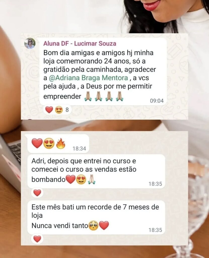Sendo bem presente no digital e com uma abordagem prática e transformadora, Adriana já impactou mais de 400 alunas em treinamentos de vendas e capacitação pelo Brasil, fortalecendo não apenas resultados financeiros, mas também a identidade e segurança de mulheres em seus negócios e relacionamentos.